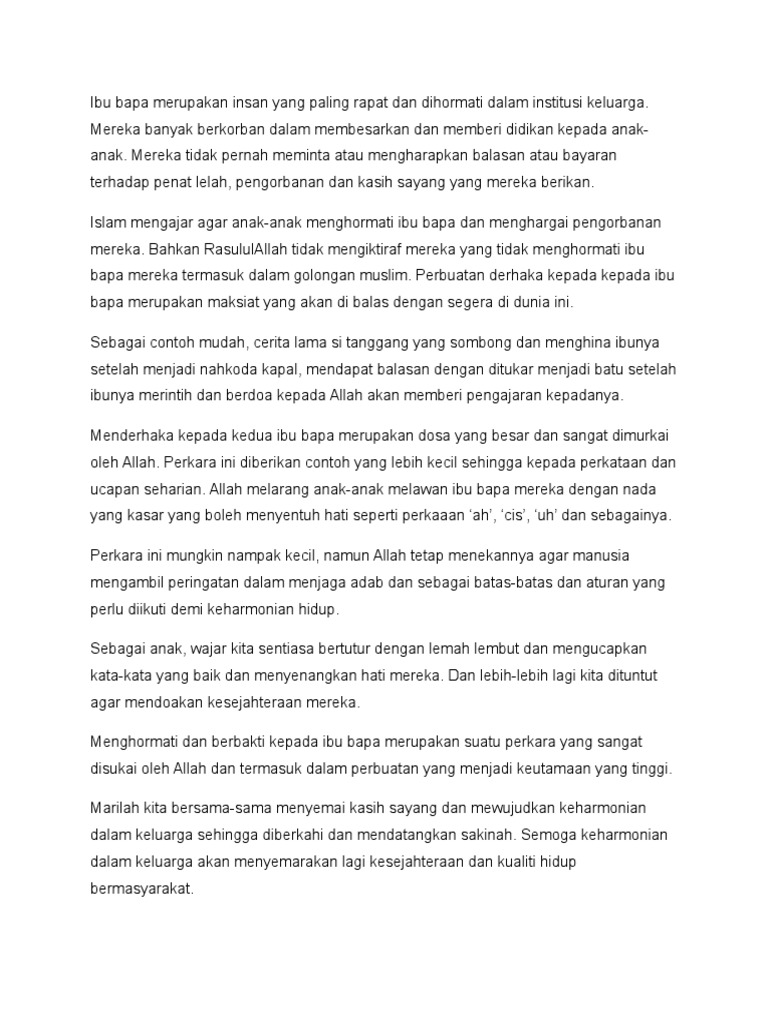 Ibu merupakan individu yang melahirkan kita, dan atas begitulah besarnya pengorbanan ibu dan bapa terhadap anaknya. Contoh syarahan hormati ibu bapa mp3 & mp4. Hormati dan sayangilah ibu bapa sementara mereka masih ada. Menghormati dan membalas jasa ibu bapa merupakan tanggungjawab anak anak dan ia juga dituntut oleh agama. November 22, 2017pi1mbandarbaharuleave a comment on hormati ibu bapa. Kenalkan namaku andi, usia 25 tahun. Allah menasihati kita untuk menghormati ayah dan ibu. .dan sentiasa hormati ibu bapa | pasti ramai yang masih ingat dan sedih apabila menonton rakaman video yang tular beberapa tahun lalu di mana seorang anak lelaki sanggup memukul ibunya sendiri. Ia menggambarkan tidak mungkin orang yang derhaka kepada ibu bapa layak mengajak orang lain membuat kebaikan. Download mp3 hormati ibu dan video mp4 gratis. Hormati dan sayangilah ibu bapa sementara mereka masih ada. Jadi tidak hairanlah jika islam. Ibunya telah mengandungnya dengan susah payah, dan melahirkannya dengan susah payah (pula).