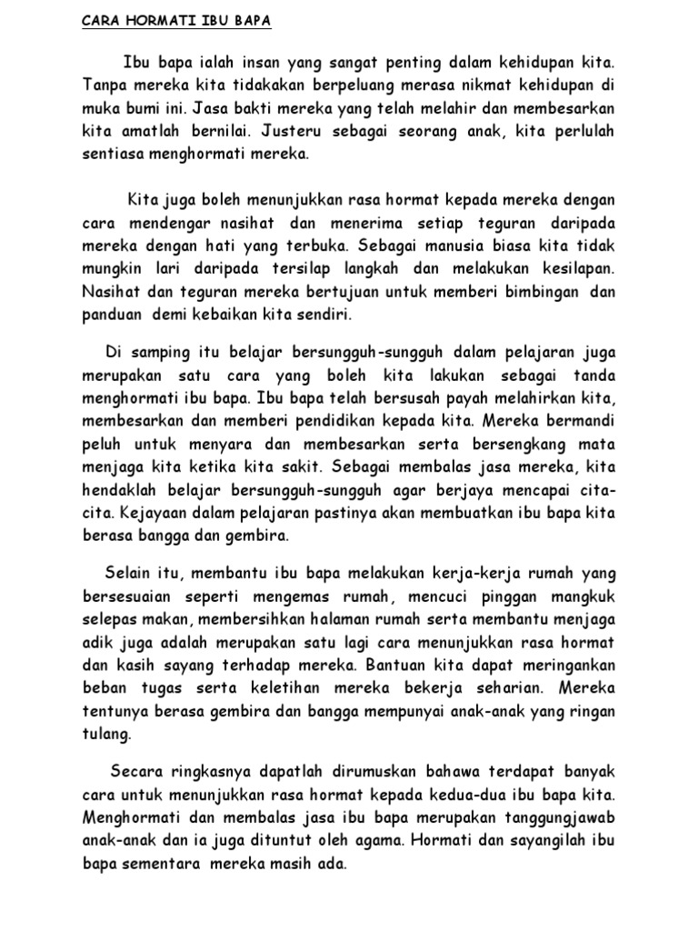 Hormati ibumu yang melahirkan dan membesarkanmu raja dangdut bang h. Hormatilah ayah dan ibumu itu adalah hukum ke 5. Contoh syarahan hormati ibu bapa mp3 & mp4. Anak yang menghormati ibu bapa akan mampu menjadikan ibu bapa. Hormatilah ayahmu dan ibumu, atau hormatilah ibu bapamu, adalah salah satu dari sepuluh perintah allah dalam alkitab ibrani dan perjanjian lama.